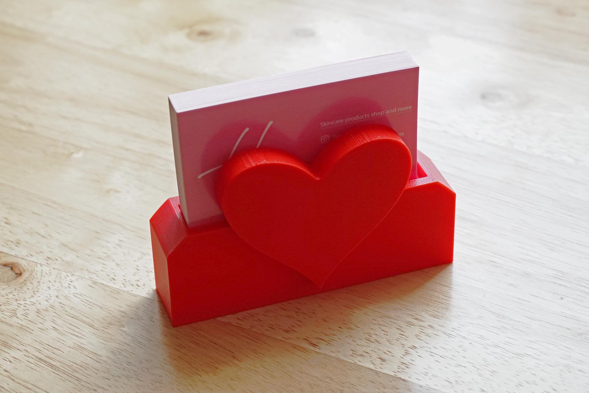 Crafted with a sleek and modern design, it securely holds your cards while adding a unique decorative element to your setup. Whether you're a business owner, entrepreneur, or looking for a thoughtful gift, this heart-shaped card holder is a delightful way to showcase your brand with personality and style.